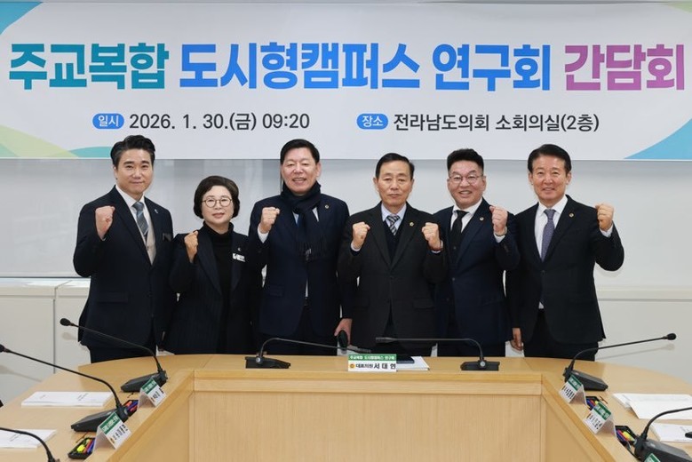 [전남 세계타임즈=우덕현 기자] 전라남도의회 주교복합 도시형캠퍼스 연구회 서대현 대표의원은 1월 30일(금) 전라남도의회 소회의실에서 간담회를 개최했다.