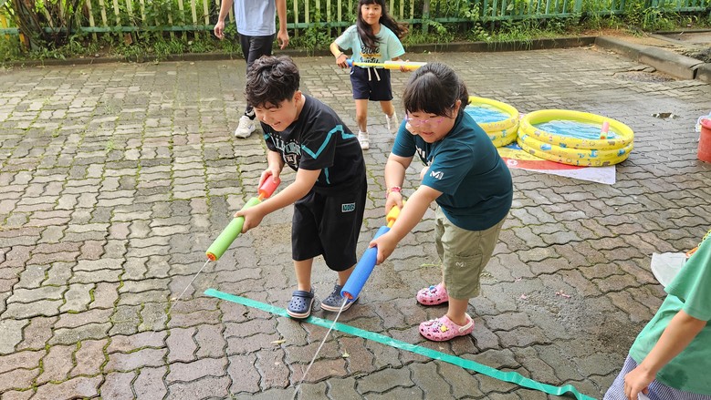 이번 행사는 물총으로 페트병 맞추기, 종이컵으로 물 옮기기, 머리 위 바구니에 물풍선 던져 받기, 스폰지 물총으로 양동이에 물 채우기, 물놀이 타투 스티커 붙이기 등을 완료하면 간식을 즐길 수 있도록 하는 등 다채로운 물놀이 게임으로 많은 학생들이 즐거운 시간을 가졌다.