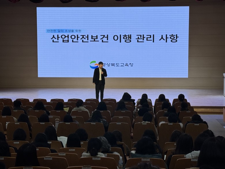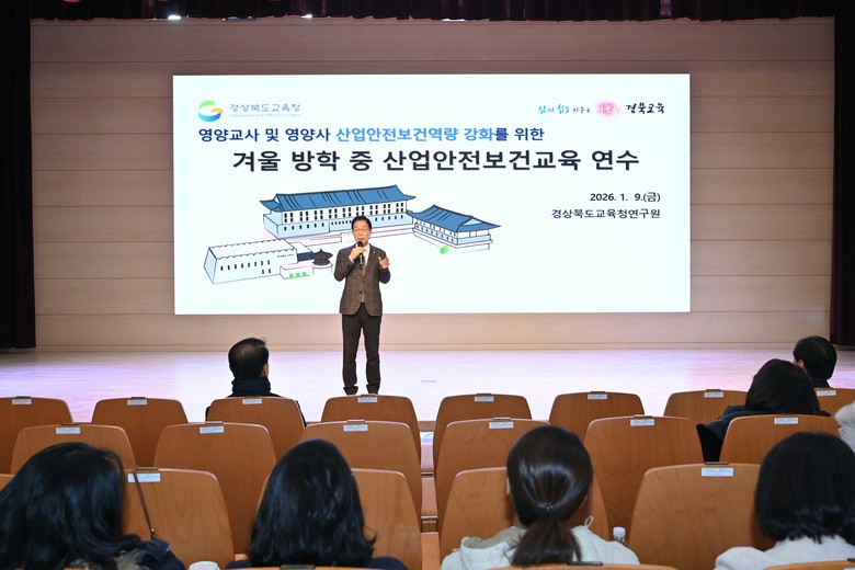 [경북 세계타임즈=한윤석 기자] 경북교육청(교육감 임종식)은 9일 안동시에 있는 경상북도교육청연구원에서 도내 모든 공.사립 학교에 근무하는 영양교사와 영양사 250명을 대상으로 ‘겨울 방학 중 영양교사 및 영양사 산업안전보건교육 연수’를 개최했다고 밝혔다.