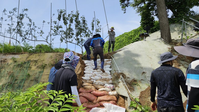 [충남 세계타임즈=이현진 기자] 충남도의회가 집중호우로 침수 피해를 당한 서산 상성리를 찾아 과수원 유실지와 침수가옥 복구 및 하천변 쓰레기 수거 등 복구작업을 지원했다.