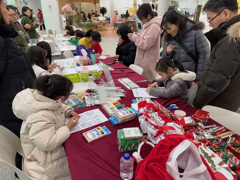 행사에서는 △나만의 텀블러 가방 색칠하기 △크리스마스 테마 키링 만들기 △책 속 문장을 활용한 책갈피 만들기 등 크리스마스를 주제로 한 체험 프로그램이 운영됐으며, 크리스마스 트리 사진 촬영 구역을 활용한 즉석사진 촬영 이벤트도 함께 진행돼 연말 분위기를 더했다.