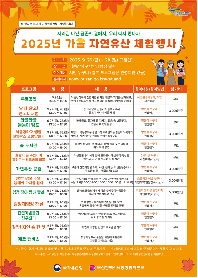 <2025년 가을 자연유산 체험 행사 행사개요>