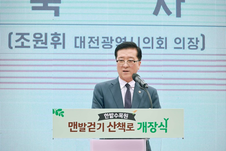 조원휘 의장은 “대전에서 가장 인기있는 관광지로 한밭수목원, 장태산 자연휴양림, 계룡산 수통골 순으로 선정된 것은 시민들이 치유와 건강을 소중히 여겨 자연·생태환경을 선호한다는 것을 의미한다”면서, “그동안 대전시의회는 5분 자유발언과 행정사무감사, 정책토론회 등을 통해 지속적으로 맨발 걷기에 대한 필요성을 제기하고 시민들의 공감대를 넓혀왔으며, 최종적으로 조례 제정과 약 4억 원의 예산 반영을 통해 맨발걷기 산책로 조성을 완료할 수 있었다”고 밝혔다.