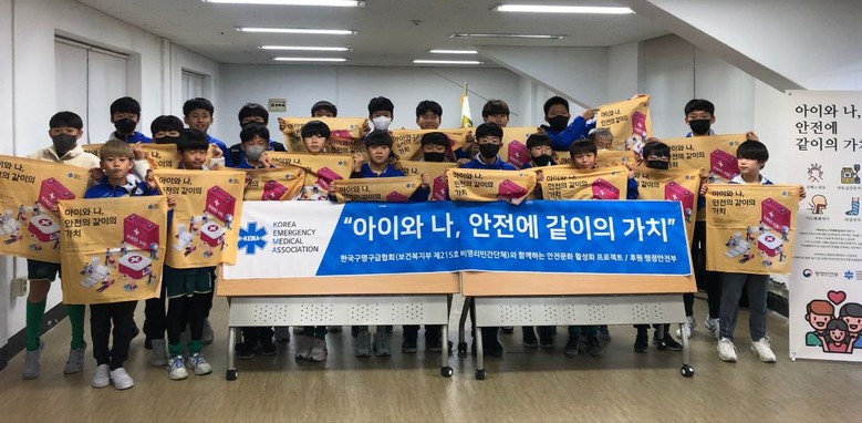 [세계타임즈 백진욱 기자] 지난 18일 한국구명구급협회가 석기영 회장의 행안부 공익활동 지원사업의 하나인 “아이와 나 같이의 가치 캠페인”을 김포종합운동장 그린 위에서 진행되었다고 말했다. 이번 교육에 참여한 유소년축구팀은 김포FC U-12 김포시체육회 소속의 이기은 감독과 이종민 코치가 이끄는 초등부 선수단으로 크고 작은 부상이 잦은 선수들에게는 절실한 응급처치 기술로 선수들의 안전과 직결되는 중요한 사안이라며 선수들에게는 유익한 경험이 될 것으로 기대한다고 언급하였다.