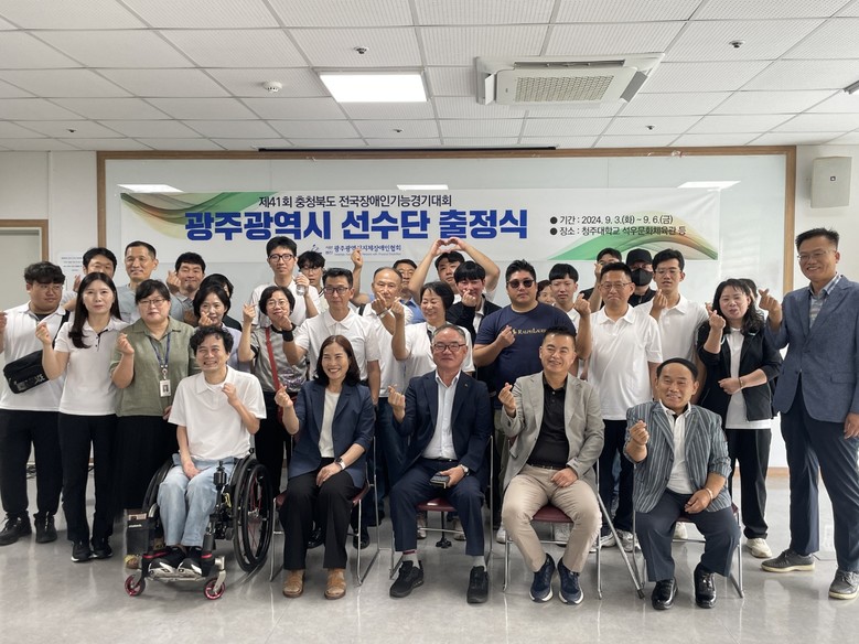 광주광역시(시장 강기정)는 3일부터 6일까지 충북 청주시에서 열리는 ‘제41회 전국장애인기능경기대회’에 광주시 대표로 26개 직종 31명의 선수가 참가, 지난 3일 ‘광주시 선수단 출정식’을 가졌다.