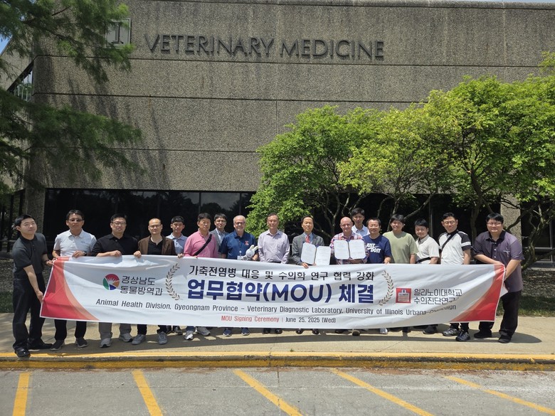 - 세계적 수준에 부합하는 경남형 방역모델 구축 첫 걸음 [세계타임즈=경남 최성룡 기자] 경상남도(도지사 박완수)는 25일 미국 일리노이대학교 어바나-샴페인 캠퍼스 수의과대학 내 수의진단연구소(Veterinary Diagnostic Laboratory, VDL)를 방문해 동물방역 분야 협력 강화를 위한 양해각서(MOU)를 체결했다고 밝혔다.