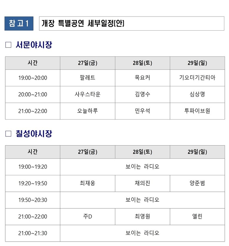 * 2025년 서문야시장(금·토·일), 칠성야시장(월·목·금·토·일)
