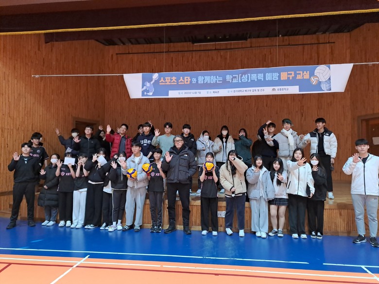 [남양주시 세계타임즈=송민수 기자] 경기도구리남양주교육지원청 광릉중학교(교장 박몽진)는 7일 체육관에서 학생, 학부모, 교직원이 함께 모여 연말연시 학교(성)폭력 및 안전사고 예방을 위한 ‘스포츠 스타와 함께하는 배구 교실’을 개최했다.
