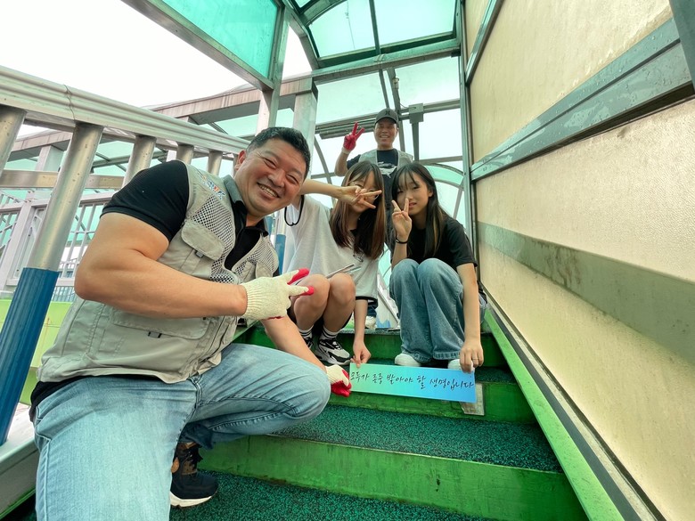 이날 조치원읍주민자치회와 대동초 학생들은 육교 근처 폐기물을 청소하고, 학생들이 직접 기획한 보행안전과 생명존중 캠페인 문구를 육교 계단에 부착했다.