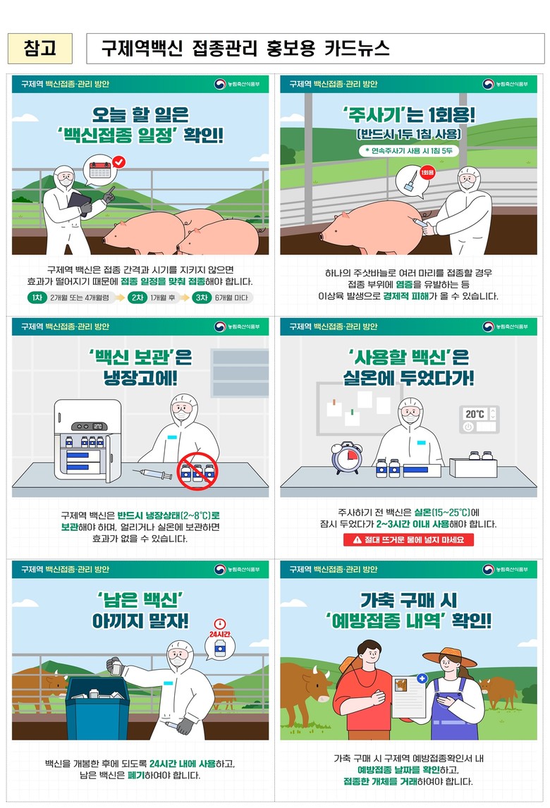 접종 지원은 9월 1일부터 추진 중이며, 접종 후 4주가 지나지 않은 개체나 임신 말기(7개월~분만일)에 해당해 일제접종 유예를 신청한 소는 제외된다.