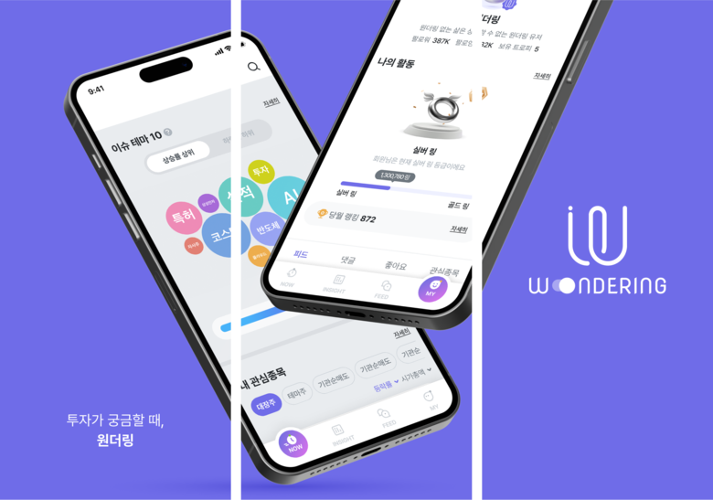 원더링은 MZ세대가 자유롭게 소통하며, 스스로 성장할 수 있도록 도와주는 투자정보 플랫폼을 지향한다. 핵심 서비스는 주식 관련 쉽고 유용한 투자정보와 커뮤니티다.