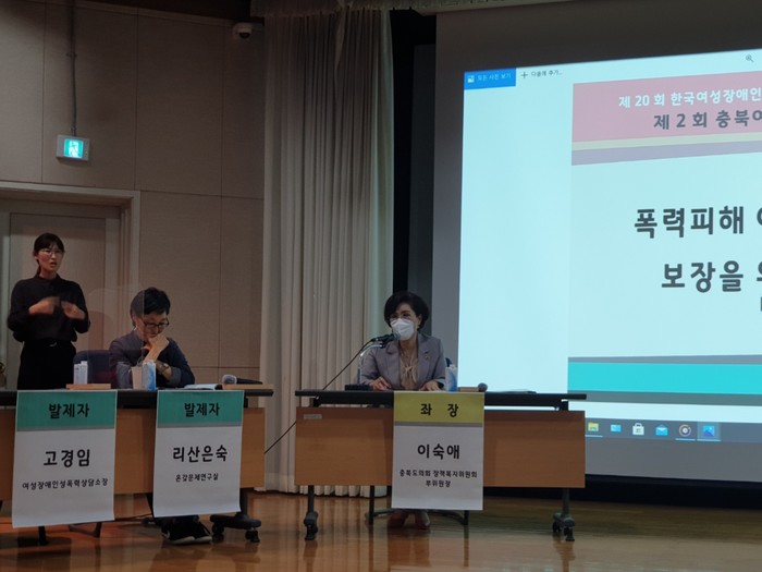 고경임 충북여성장애인연대 부설 여성장애인성폭력상담소 소장과 리산은숙 온갖문제연구실 대표의 기조 발표를 시작으로 정승희 충북이주여성인권센터 대표, 배성희 모자보호시설 청주해오름마을 원장, 허루비나 자립지원 공동생활시설 제르마나빌 원장, 조연희 충북직지장애인자립생활센터 기획실장이 열띤 토론을 펼쳤다.