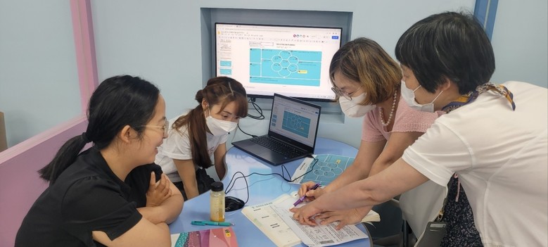 성찰의 시간이 주는 역동성은 컸다. 특히 지난 7월 5일, 교사들이 한자리에 모인 수업나눔 컨퍼런스에서 ‘IB 교육 도입을 위한 개념기반 탐구학습의 실천 설계’를 위한 공동학습이 거론되었다. ▷PYP에서의 개념은 무엇인가 ▷핵심 개념과 ATL(학습접근방법) ▷개념기반 탐구학습 UOI 설계 ▷IB 학습자상, 초학문적 주제와 관련 설명에 대한 이해 ▷중심아이디어와 2022개정 교육과정의 핵심아이디어 비교 등을 함께 정리해 보았다. 그리고 개념기반탐구학습 방법을 적용, 학년별로 2학기 탐구 단원을 설계해 보았다. 처음에는 IB 교육프로그램의 용어들이 익숙하지 않아서 혀끝에 맴돌았지만 점차 토론이 깊어지면서 앞에서 살펴본 미션들이 모두 포함되는 설계 초안을 만들어냈다. 더구나 미래과학실의 에듀테크 토론장은 과정 활동을 확인하며 목표를 향해 가는 모든 것을 즉시 공유하고 새롭게 아이디어를 추가하는 협력적인 수행력을 드높였다고 분석했다.
