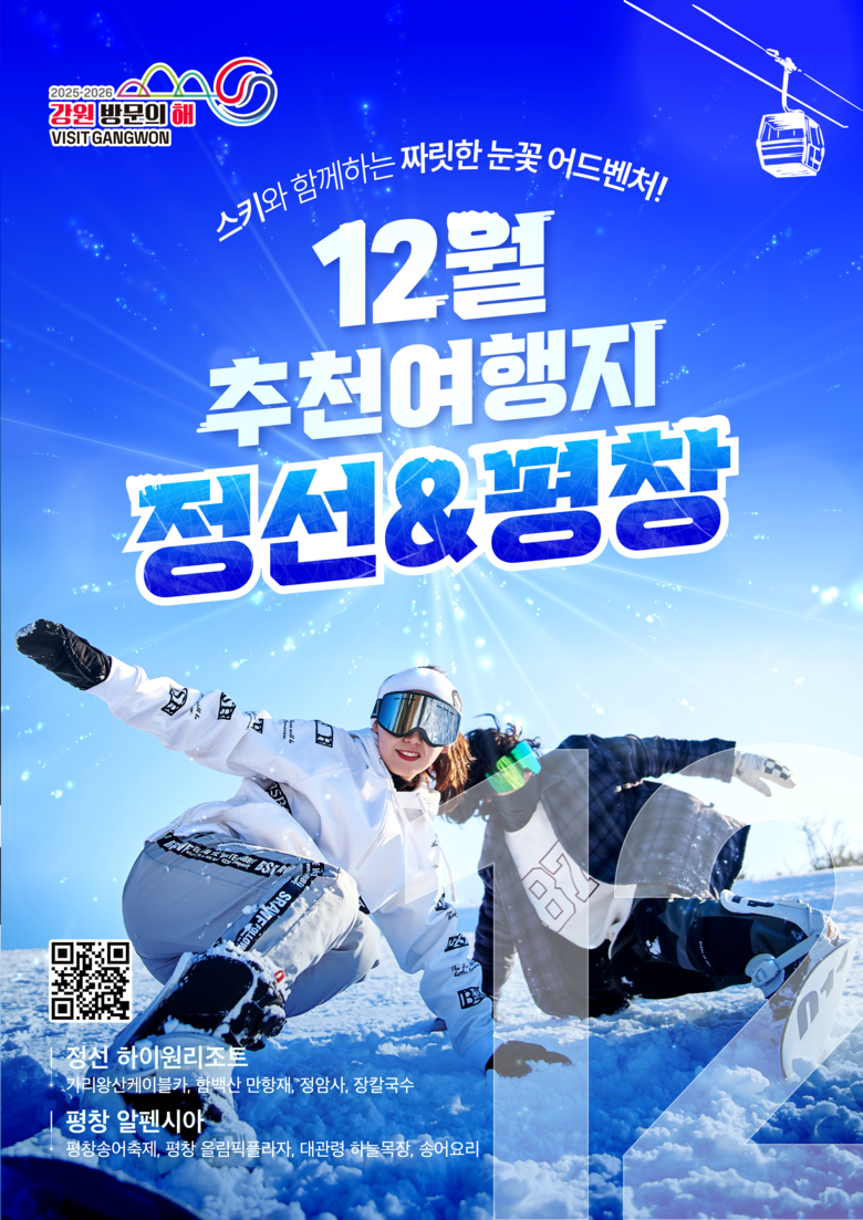 강원관광재단 최성현 대표이사는 “12월에는 대한민국 대표 겨울 레저 성지인 정선과 평창에서 짜릿한 스키를 즐기는 것은 물론, 가리왕산과 함백산의 눈 덮인 절경, 그리고 싱싱한 송어요리와 곤드레밥 등 강원의 특별한 맛을 함께 즐겨보시기를 바란다”고 전했다.