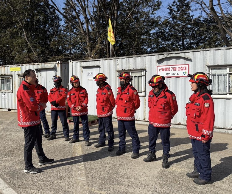 이번 점검은 구룡산 입산통제구역의 통제 안내문 설치 여부와 산불 위험요인 관리 실태를 확인한 뒤, 산림재난대응단 북면 대기소를 찾아 전문진화대원의 출동 태세와 진화 장비 관리 상태를 점검하는 순으로 진행됐다.