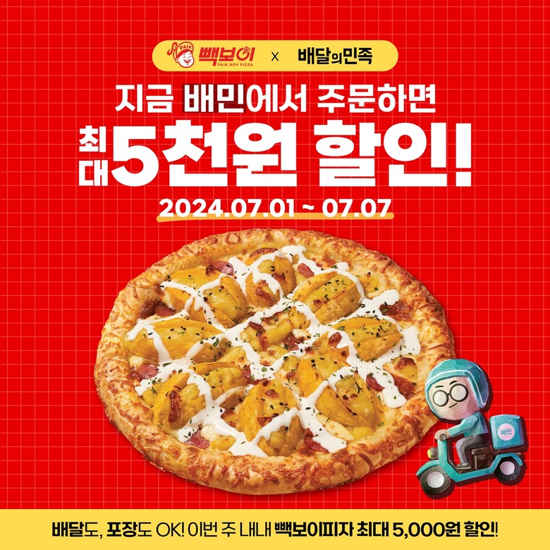 빽보이피자 관계자는 “더워지는 날씨에도 항상 빽보이피자에 큰 사랑을 보내주시는 고객분들께 기분 좋은 혜택을 제공하기 위해 배달의민족과 제휴를 맺고 이번 프로모션을 준비했다”라며, “피자업계 최초로 카카오프렌즈와 협업하여 선보인 신메뉴와 MD 상품도 합리적인 가격에 만나볼 수 있는 좋은 기회가 되길 바란다”고 말했다.