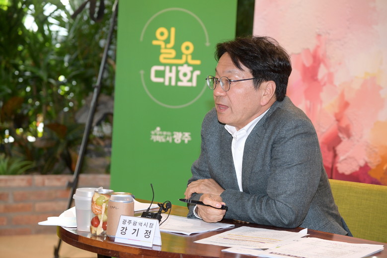 강기정 광주광역시장은 지난 30일 오후 시청 다목적홀에서 ‘북동재개발 바람직한 개발방향’을 주제로 ‘34번째 월요대화’를 열었다.