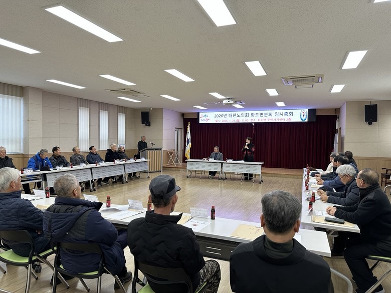[강화군 세계타임즈=심하린 기자] 강화군 화도면 노인회(분회장 조휘명)가 지난 26일, 주민자치센터 2층에서 조순이 화도면장을 비롯해 각 경로당 회장 등 24여 명이 참석한 가운데 임시총회를 개최했다.