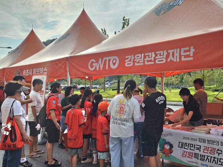 [강원도 세계타임즈=김민석 기자] 강원관광재단(대표이사 최성현)은 지난 8월 31일(일), 강릉 종합운동장에서 열린 강원 FC와 포항 FC의 K리그1 경기에서 ‘2025-2026 강원 방문의 해’ 홍보 부스를 성공적으로 운영했다고 밝혔다.
