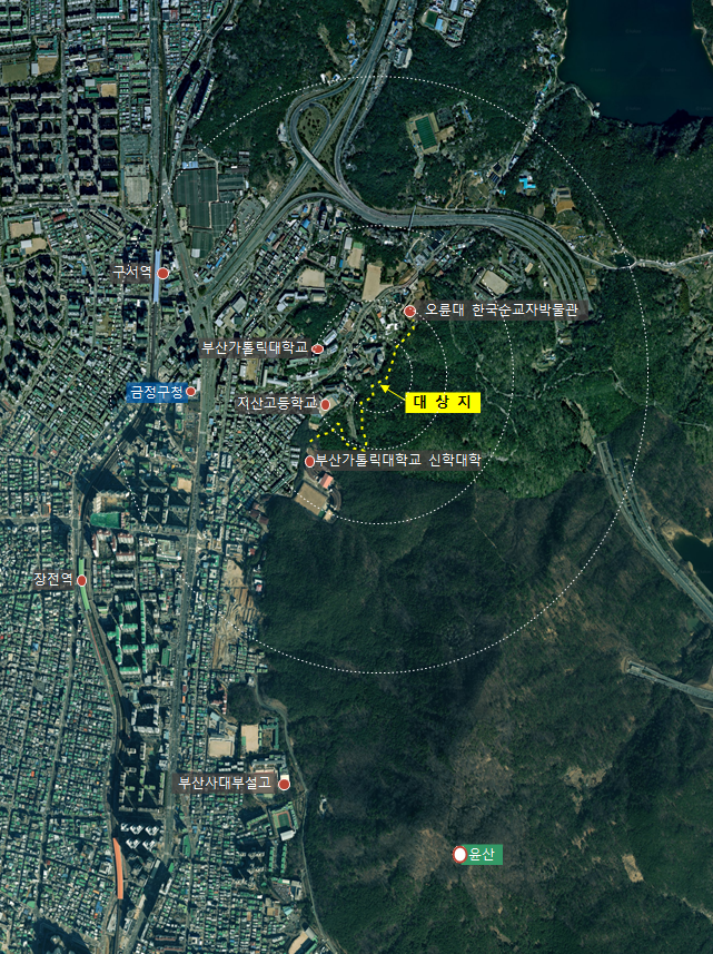 조성 대상지는 부산가톨릭대학교 신학대학(양재현마르티노관)에서 오륜대한국순교자박물관까지 이어지는 윤산 등산로와 갈맷길이 연결되는 구간이다.