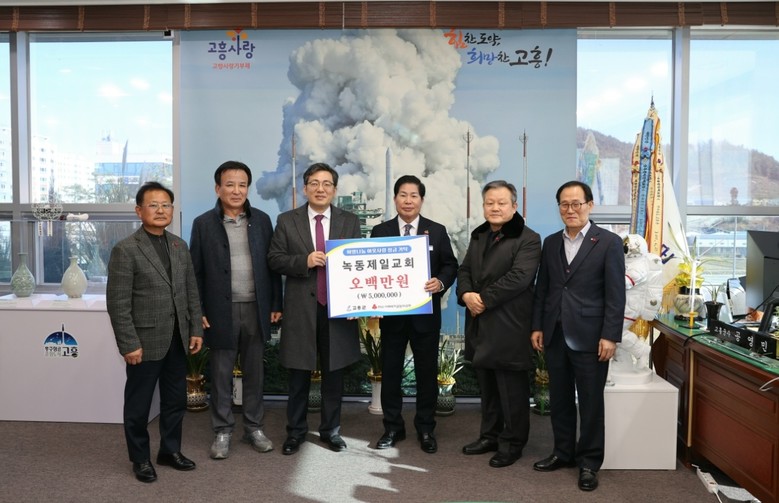 [고흥군 세계타임즈=우덕현 기자] 고흥군(군수 공영민)은 지난 26일 녹동제일교회(담임목사 정용철)로부터 지역 내 어려운 이웃을 돕기 위한 성금 500만 원을 기탁받았다고 밝혔다.