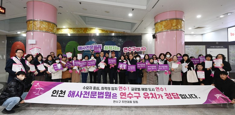 이재호 구청장은 12일 인천지하철 1호선 테크노파크역과 동춘역에서 진행된 ‘해사법원 연수구 유치 서명운동’ 현장에서 법안 국회 통과 소식을 접한 뒤 “매년 5,000억 원에 달하는 국외 법률 비용 유출을 막고 대한민국 사법부의 위상을 세계적 수준으로 격상시킬 전략적 결정”이라면서 “입지 선정에 있어 정치적 배려가 아닌 ‘실무적 정답’을 찾아야 한다.”라고 말했다.