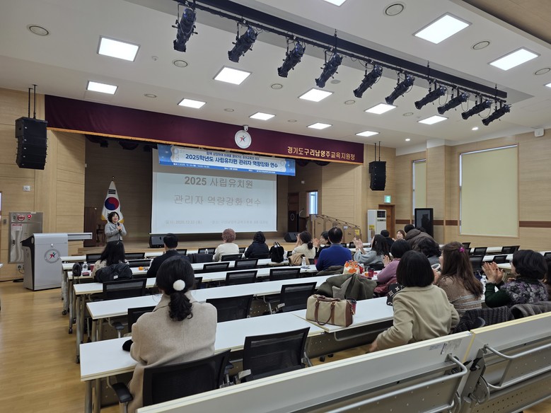 [남양주시 세계타임즈=송민수 기자] 구리남양주교육지원청(교육장 서은경)은 2025년 12월 22일(월) 구리남양주교육지원청 2층 대강당에서 관내 사립유치원 원장·원감 50여 명이 참여한 가운데 「2025 사립유치원 관리자 역량강화 연수」를 운영하였다.