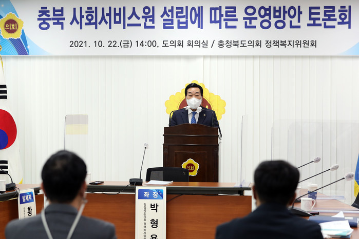 [충북=세계타임즈 이현진 기자] 충북도의회 정책복지위원회(위원장 박형용)는 22일 도의회 회의실에서 박형용 위원장(옥천1)을 좌장으로 ‘충북 사회서비스원 설립에 따른 운영방안 토론회’를 개최했다.