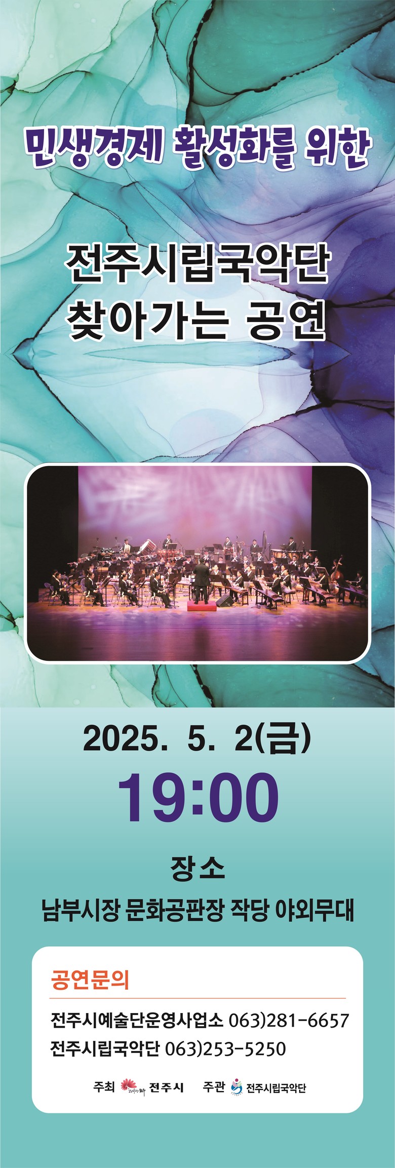 - 민생경제 응원 위해 5월 2일 남부시장 문화공판장 작당 야외무대에서 특별 공연… [전주시 세계타임즈=이채봉 기자] 전주시립국악단(예술감독 겸 지휘자 심상욱)은 오는 5월 2일(금) 오후 7시, 전주 남부시장 문화공판장 작당 야외무대에서 시민들과 함께하는 찾아가는 국악 공연을 선보인다.