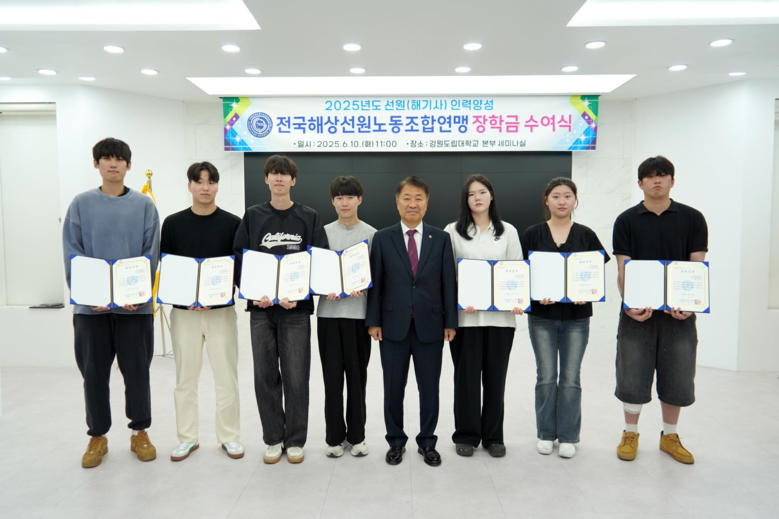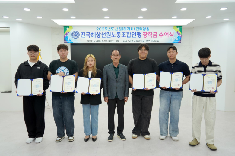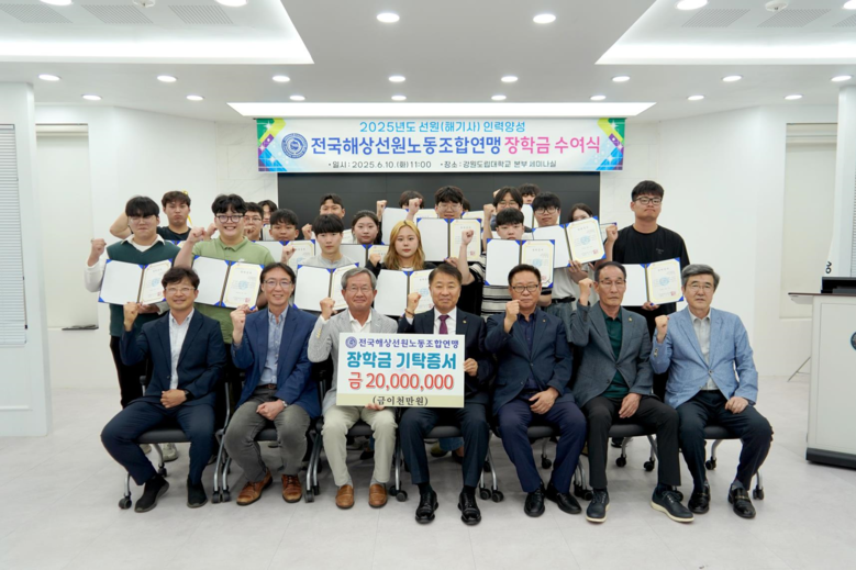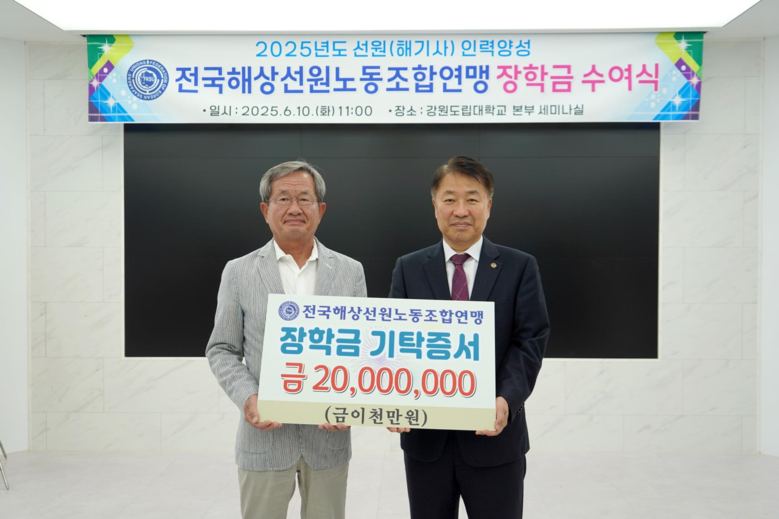 선원노련은 국내 해상산업 종사자의 권익을 보호하고 복지 증진을 위해 1946년 ‘해상노동연맹’으로 창립된 이래 지속적으로 활동해 온 대표적인 해양노동자 단체다. 강원도립대학교에는 2021년부터 매년 1인당 100만 원씩, 총 20명에게 장학금을 기탁하며 인재 육성에 힘을 보태고 있다.