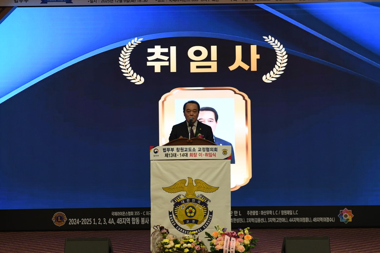 [세계타임즈]최성룡기자 =12월9일(화)18시:30분 국제라이온스협회355C지구회관 4층에서 법무부 창원교도소 교정협의회 제13대.(회장 이환수) 14대.회장(회장 김종식) 이.취임식을 갖었다.