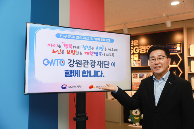 [강원도 세계타임즈=김민석 기자] 강원관광재단(대표이사 최성현)은 4월 4일, ‘인구문제 인식개선 릴레이 캠페인’에 동참했다고 밝혔다.