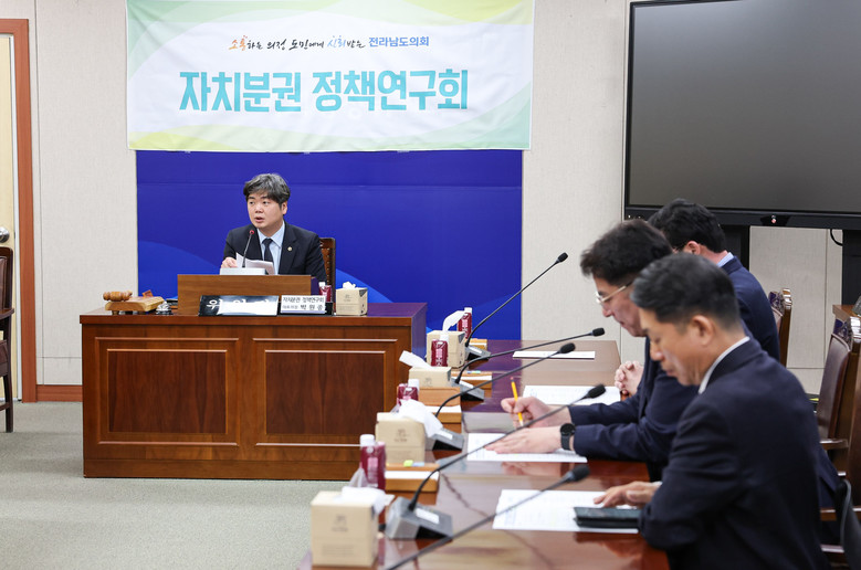한편, 자치분권 정책연구회는 박원종(영광1) 대표의원을 비롯해 서동욱(순천4), 전경선(목포5), 신민호(순천6), 조옥현(목포2), 박문옥(목포3), 주종섭(여수6), 이재태(나주3), 류기준(화순2), 김주웅(비례)의원 10인으로 구성됐다.