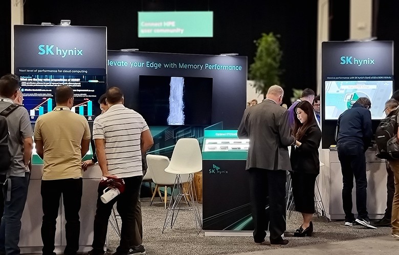 SK하이닉스는 이 행사에서 ‘메모리 성능으로 고객의 경쟁력을 높인다(Elevate your Edge with Memory Performance!)’는 슬로건을 걸고, 고성능 PCIe 5세대 기반의 기업용 SSD인 PS1010 E3.S와 10나노급 5세대(1b) 공정이 적용된 서버용 D램 모듈인 DDR5 RDIMM을 소개했다. 또 회사는 이 두 제품을 HPE의 최신 서버인 Gen11에 장착해 성능을 시연하는 등 공동 프로모션을 진행했다.
