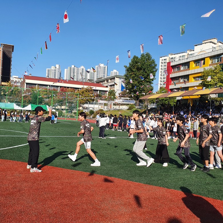 [시흥시 세계타임즈=심하린 기자] 소래중학교(학교장 장정재)에서 10월 25일(금) 전교생 체육한마당과 공간재구조화(그린스마트 미래학교) 기념식을 개최했다. 체육대회와 함께 치러진 기념식에는 안광률 도의원, 채열희 시흥교육지원청 교육장, 학교운영위원회 및 학부모 위원 등이 참석하여 새롭게 옷을 갈아입은 소래중학교의 희망찬 시작을 응원하였다.