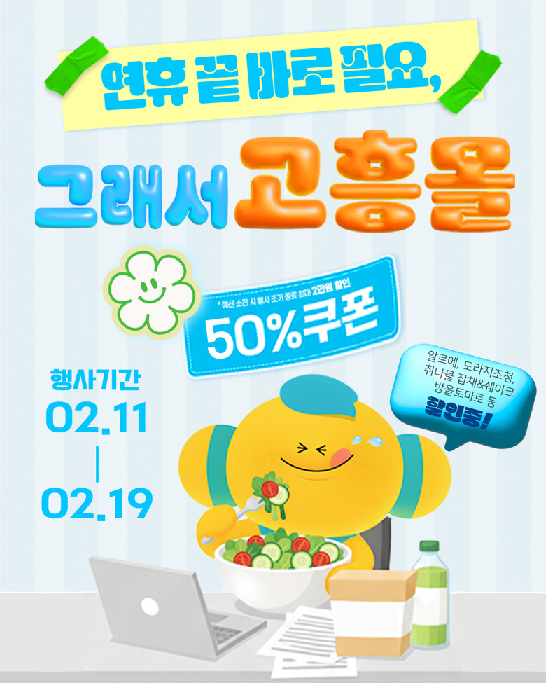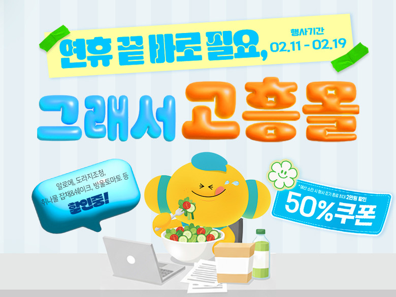 고흥몰은 오는 2월 11일부터 19일까지 9일간 「연휴 끝 바로 필요, 그래서 고흥몰」 기획전을 열고 알로에, 도라지청, 취나물 셰이크 등 건강 먹거리를 최대 50% 할인 판매한다고 밝혔다.