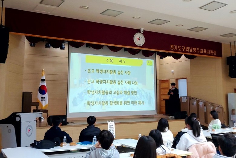 [남양주시 세계타임즈=송민수 기자] 경기도구리남양주교육지원청 교문중학교(교장 이명자)는 11월 20일 구리남양주교육지원청 주관 청소년 교육의회 사회참여활동 발표 및 학생자치활동 공유회에서 학생자치회 우수 운영사례를 발표하는 시간을 가졌다.