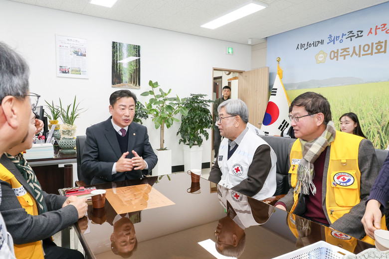 [여주시 세계타임즈=송민수 기자] 여주시의회(의장 박두형)는 지난 1월 6일 여주시의회에서 대한적십자사 관계자들이 참석한 가운데 2026년도 대한적십자사 특별회비 전달식을 가졌다.