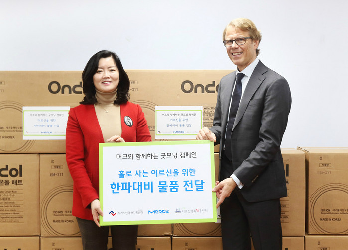 한국머크(대표이사 글렌 영) 바이오파마(총괄 제네럴 매니저 울로프 뮨스터)는 지난 17일 임직원과 심혈관계 질환 의료 전문가가 참여한 사회공헌 활동 ‘굿모닝 캠페인’의 적립금을 보건복지부 독거노인종합지원센터(센터장 김현미)에 기부하면서 국내 5개 도시에 거주하는 독거노인을 찾아가 말벗 봉사를 진행했다.