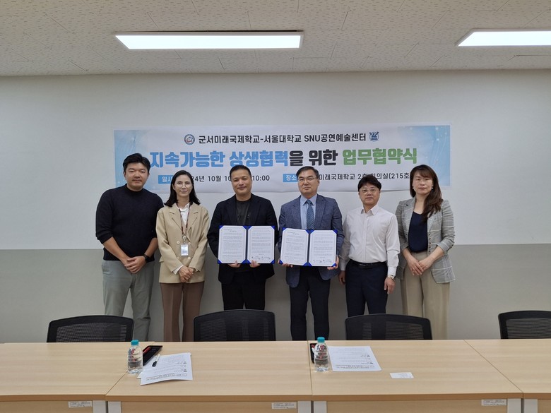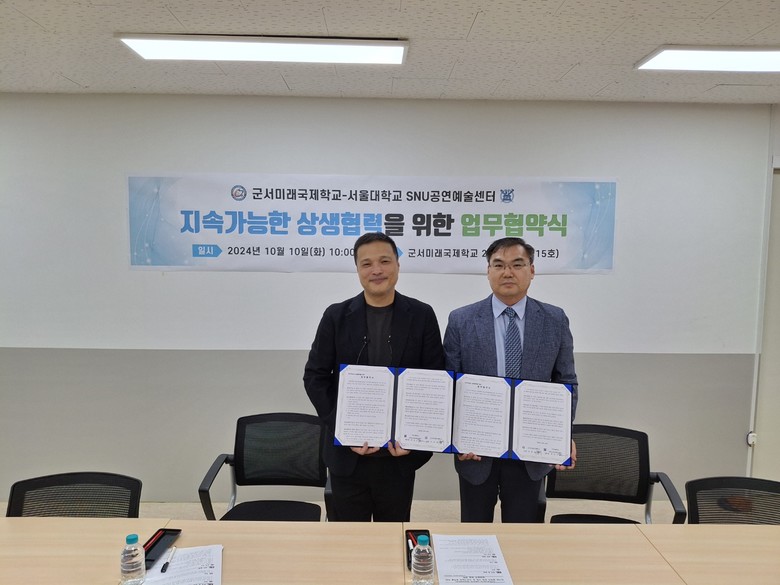 [시흥시 세계타임즈=송민수 기자] 경기도 시흥시 군서미래국제학교(교장 이용규)는 10일 서울대학교 SNU공연예술센터(센터장 김승근)와 지속 가능한 상생협력을 위한 업무협약식을 개최했다고 밝혔다.