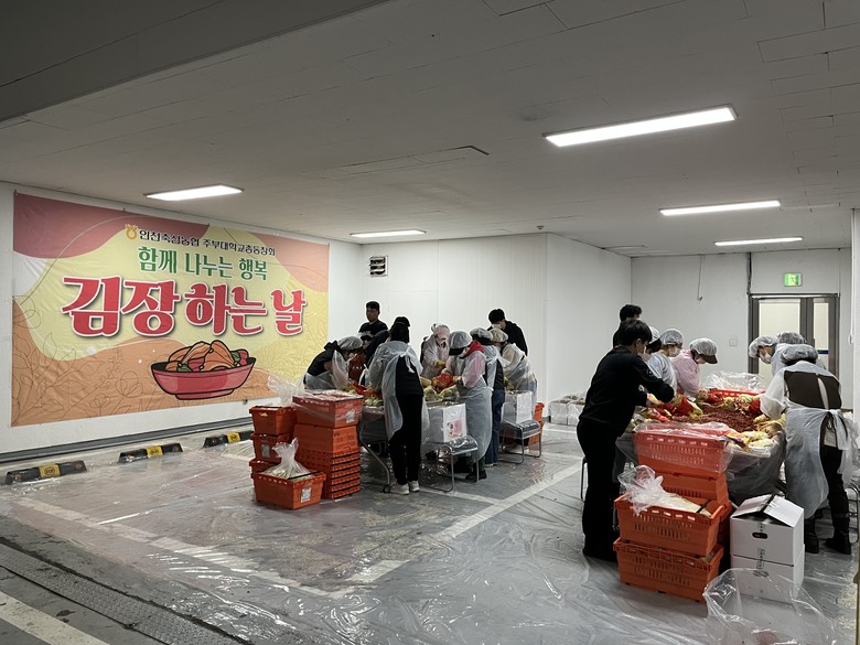 이번 행사는 인천축협 임직원, 인천축협 주부대학 총동창회, 경기농협이 함께 참여해 정성껏 김장김치 1,000kg를 만들었으며, 겨울철 어려움을 겪는 인천시 관내 취약계층에게 전달하여 따뜻한 겨울나기를 지원하고자 마련되었다.