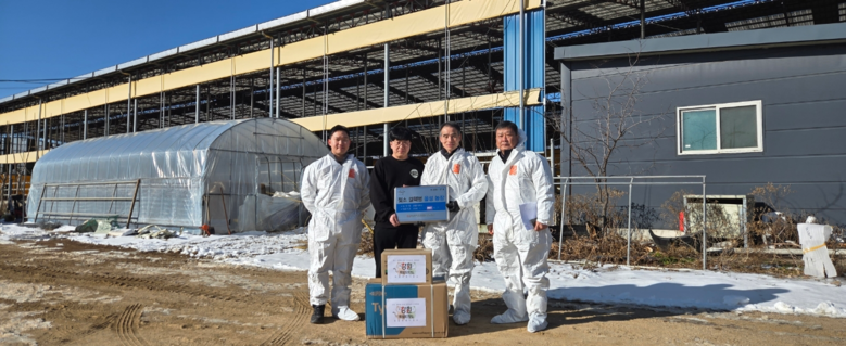 | ▲ 강원특별자치도 동물위생시험소 박유진 소장 인증농장 현판 수여(‘25.12.26./참석 홍성관 철원군 축산과장) |