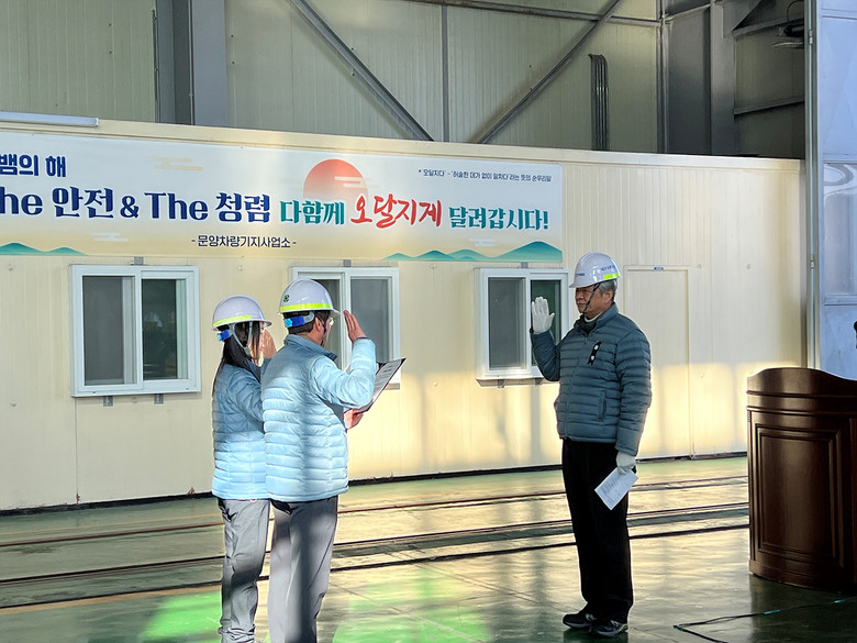 이후 사장을 포함한 임직원 100여 명은 문양차량기지 검수고에서 안전실천결의를 하고 특히, 작업전 안전점검 회의(Tool Box Meeting)를 시연해 사고와 재해가 없는 사업장을 만들기 위한 안전문화 의식을 고취했다.