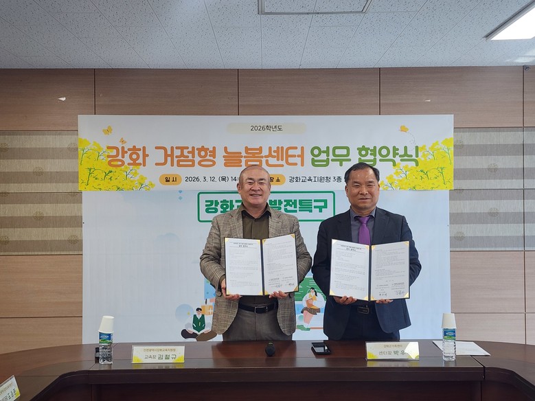 [인천 세계타임즈=심하린 기자] 인천강화교육지원청(교육장 김철규)은 지난 12일 교육지원청 및 강화군가족센터 관계자가 참석한 가운데, 강화군가족센터와 주말 돌봄 공백 해소를 위한 ‘2026년 강화 거점형 늘봄센터 위탁운영 협약’을 체결했다.