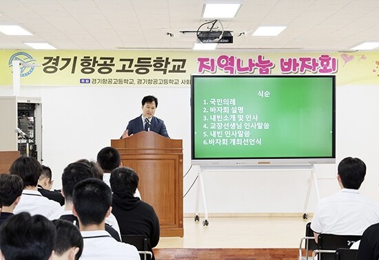 경기항공고 유형진 교장은 학생들에게 바자회의 의미와 나눔바자회의 취지를 설명하면서“이번 바자회는 힉교 구성원들의 소통의 자리이면서, 물질적으로 풍요로운 시대이지만 그에 비례하여 우리의 정신도 풍요롭게 가꾸어 그것을 주변의 소외된 이웃들과 나눌 수 있었으면 좋겠다”고 하면서 “현대인의 무분별한 소비가 자연 파괴와 자연 고갈을 일으킨다는 것을 깨닫고 우리 삶의 태도에 대한 수정이 있어야 하고 실천이 뒤따라야 하며 그것이 진정한 탄소중립이다”라고 힘주어 강조하였다.