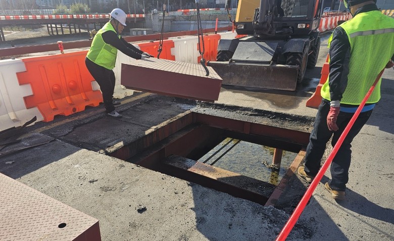 특히, 가설 후 1년 차 도래 시점에 복공판 17매에 대한 품질시험을 추가 실시한 결과, 외관상태 및 성능시험(내하중성) 전 항목에서 모두 ‘적합’ 판정을 받았다. 유등교 가설교량에 사용된 복공판은 재사용품임에도 불구하고 국가 품질관리 기준을 모두 충족한 정상 자재임이 공인기관을 통해 공식적으로 재확인했다.