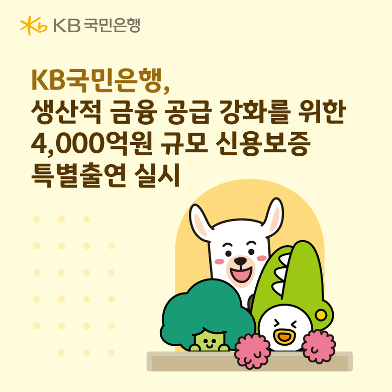 KB국민은행은 오는 5일부터 총 140억원(신·기보 특별 출연금 각 50억원, 보증료 지원금 각 20억원)의 출연을 통해, 협약 보증서를 담보로 약 4,000억원 규모의 대출을 지원한다.