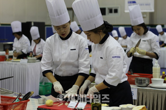 [세계타임즈 이영진 기자]삼성전자가 14일 광주 동림다목적 체육관에서 지역 저소득 청년과 독거 노인을 대상으로 자사의 가전제품을 활용한 '삼성 스마트 쿠킹 대회'를 개최했다고 15일 밝혔다.
