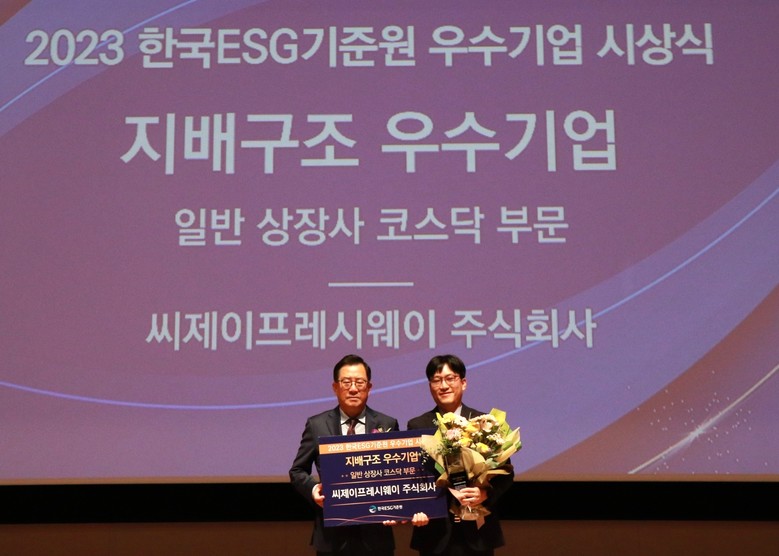 [세계타임즈 = 이현진 기자] CJ프레시웨이가 지난 24일 한국ESG기준원(이하 KCGS)이 주최한 ‘2023년 한국ESG기준원 우수기업 시상식’에서 ‘지배구조 우수기업’(코스닥 부문)에 선정됐다. KCGS는 국내 대표 ESG 평가기관으로 매년 기업의 지속가능 경영 수준을 평가해 지배구조 및 ESG 우수기업을 선정 · 시상하고 있다.