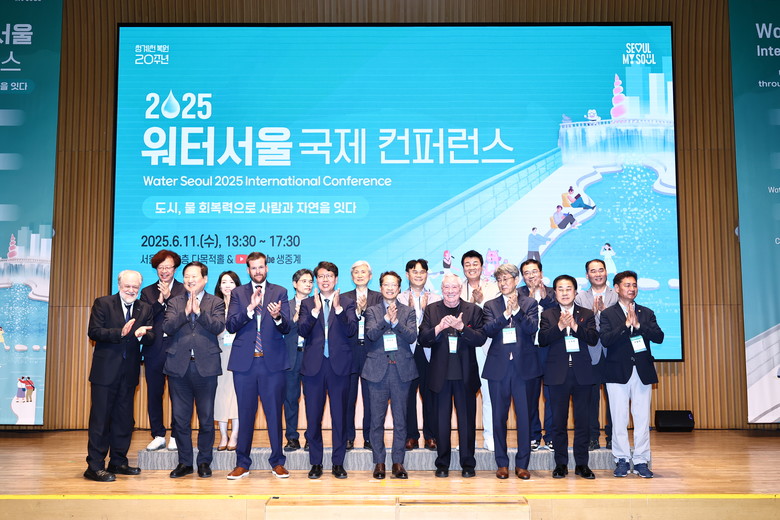| ▲ 지난 6월 11일 2025 워터서울 국제 컨퍼런스에 김용호 시의원(앞줄 오른쪽 두 번째)이 참석해 단체 기념촬영을 하고 있다. |